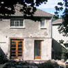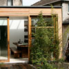A small end-of terrace house was extended to the rear and side with a light-filled livingroom. The majority of the internal walls at ground floor were removed to create open and flowing livingspace. A large highly-insulated sliding glass wall connects the new room with the garden.